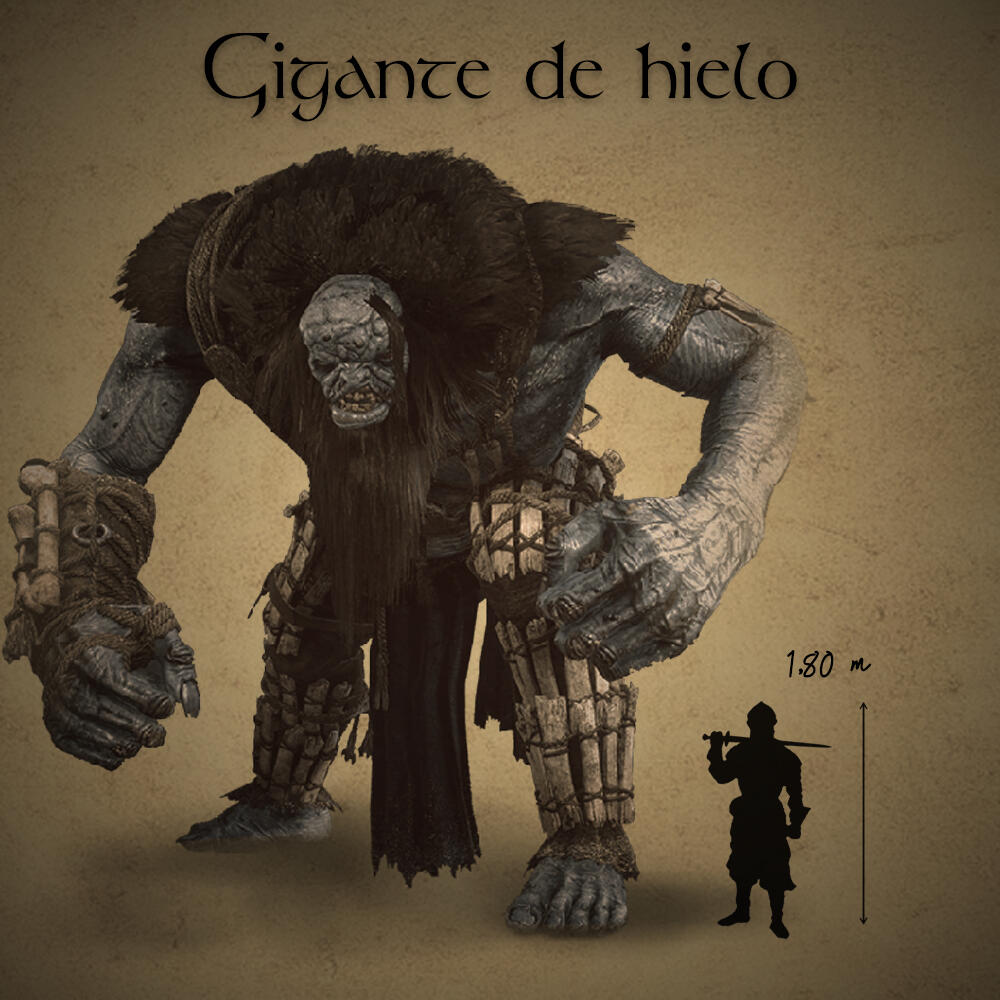 El tamaño de estas criaturas es inversamente proporcional a lo que sabemos de ellas. Salta a la vista que quedan pocos en el continente, o de lo contrario los humanos no habrían podido expandirse como lo han hecho. Los gigantes de hielo parecen el último eslabón superviviente de una gran familia de especies, a juzgar por los fósiles encontrados y la poca información que nos proporcionan los dragones. Si se produjo un conflicto entre ambas especies, dicho suceso ha sido olvidado por la memoria colectiva.Debilidades: ninguna. Los gigantes son enemigos terribles, con una inteligencia, en apariencia, similar a la humana. Ningún jinete debería enfrentar a uno sin su dragón, o en absoluto.