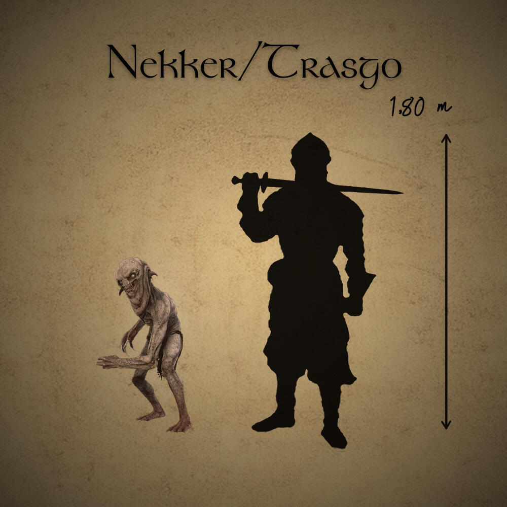Estos traviesos seres, también llamados trasgos, no deben confundirse bajo ningún concepto con duendes o similares pertenecientes a los cuentos infantiles, pues solo su apariencia debería ser un indicativo de su naturaleza. Suelen vivir bajo colinas donde dentro de los bosques, excavan sus madrigueras, y salen de ellas únicamente para cazar o expandir sus territorios. Como reza el dicho: “un trasgo es inofensivo, cinco son peligrosos, y diez son capaces de matar a un jinete experimentado”.Debilidades: sus ataques son generalmente desorganizados dado su bajo intelecto. A la hora de plantear un combate, el jinete debe centrarse primero en los individuos más decididos y terminar gradualmente por los más rezagados y asustadizos.